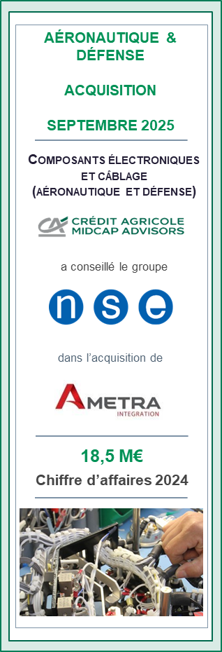 Crédit Agricole Midcap Advisors a conseillé le groupe NSE, coté sur Eurnonext Growth, dans l’acquisition de la société Ametra Integration